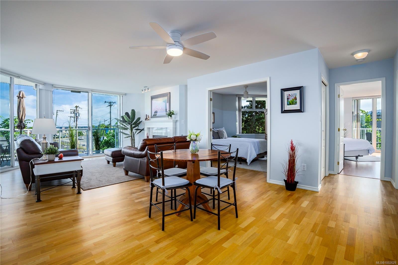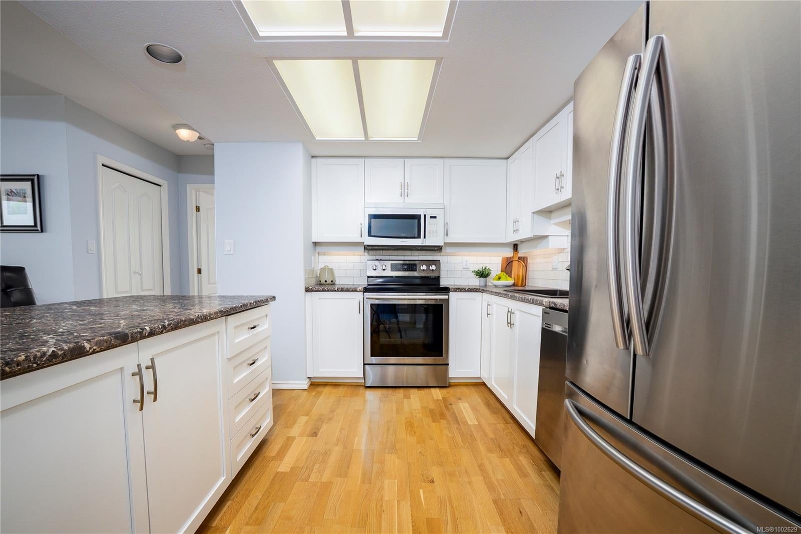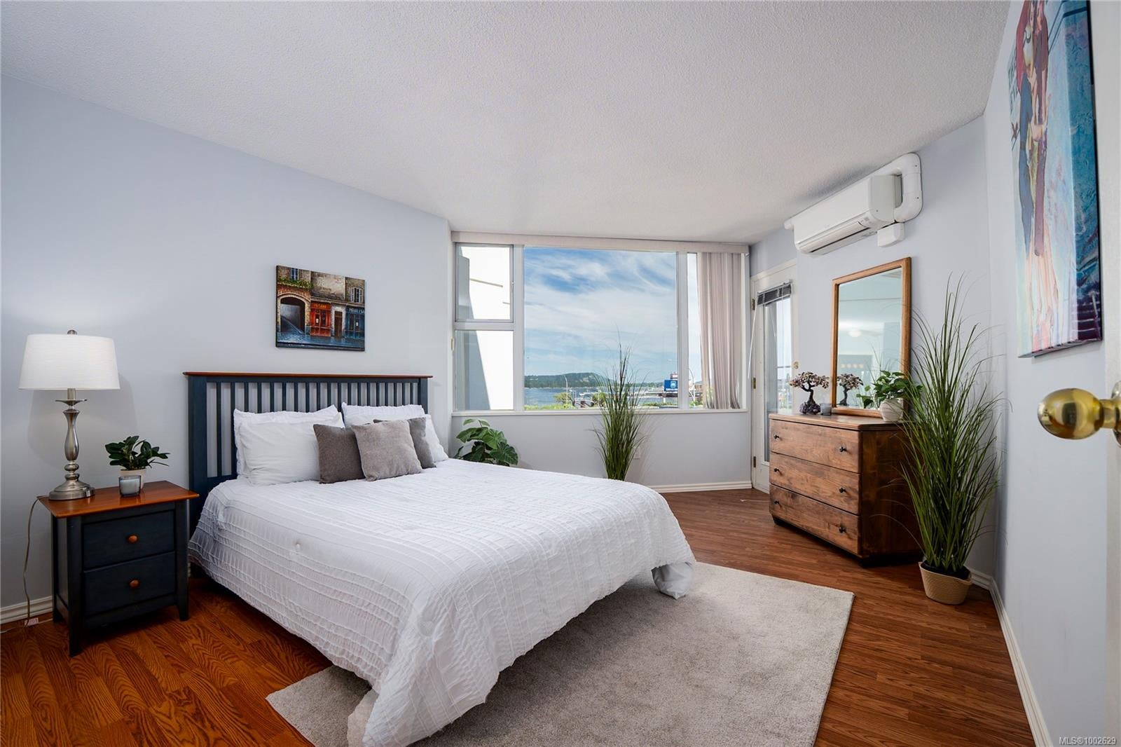 Welcome to this immaculately updated, pet friendly 3 bed, 2 bath 1343 sqft corner unit in the Gabriola building on Cameron Island. The south facing condo offers stunning natural light and beautiful views of the ocean and Mount Benson from your two private balconies. Inside, you'll find hardwood floors, updated cabinets, counters, appliances, and a cozy gas fireplace included in your strata fees. The top-down bottom-up blinds offer privacy without sacrificing light and the two efficient ductless heat pumps keeps you cool in summer and warm in winter. Building highlights include concrete construction, hot tub, bike storage, secured underground parking for 2 cars, and a storage locker. All this in a prime waterfront location just steps to the seawall, Port Theatre, Helijet, inner harbour, Hullo ferry, sea plane, shops, and downtown amenities.