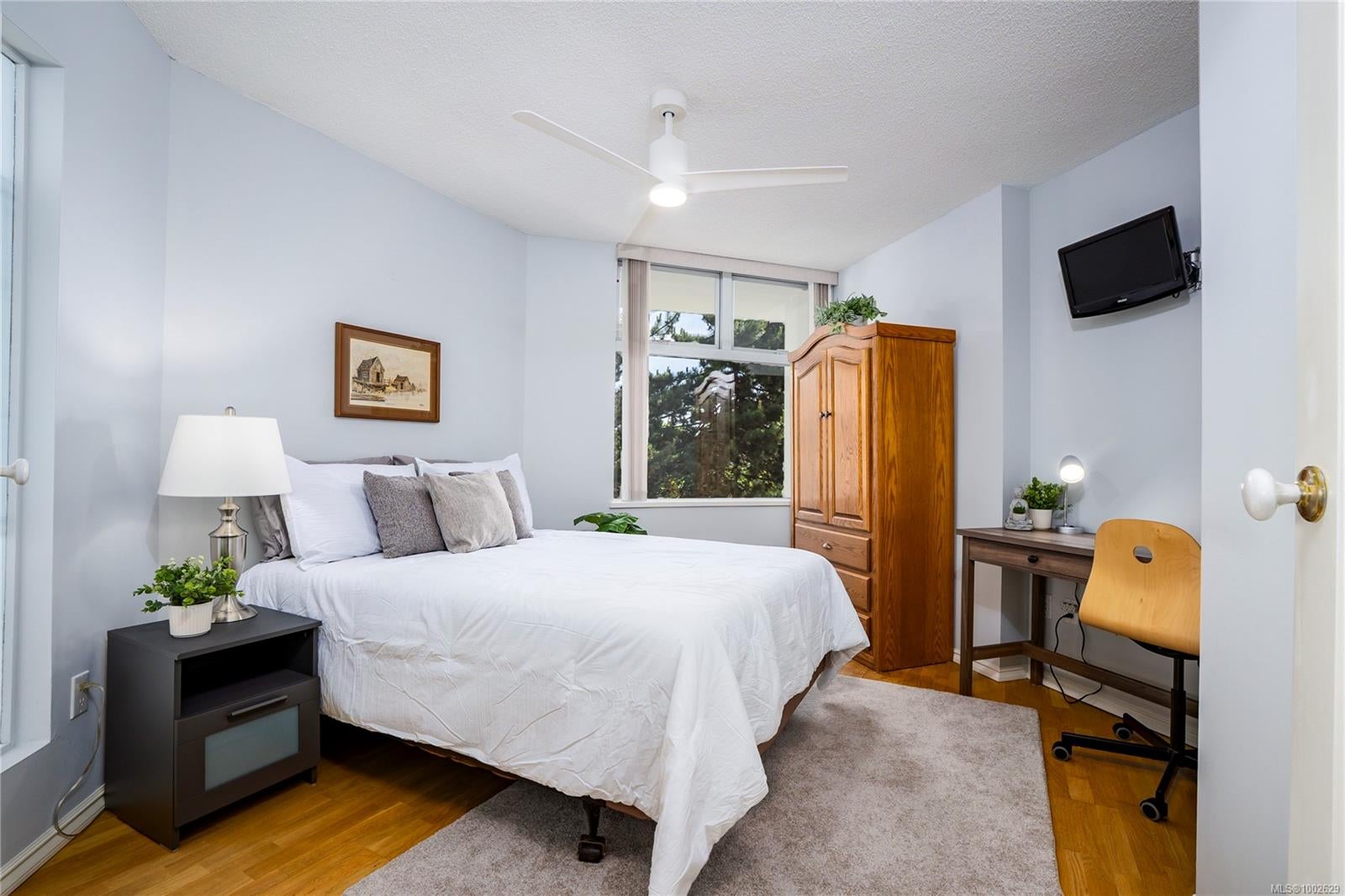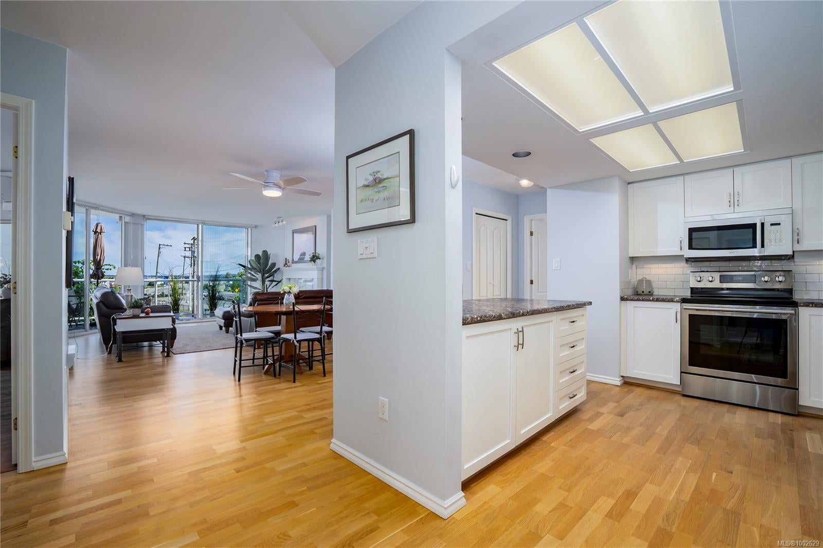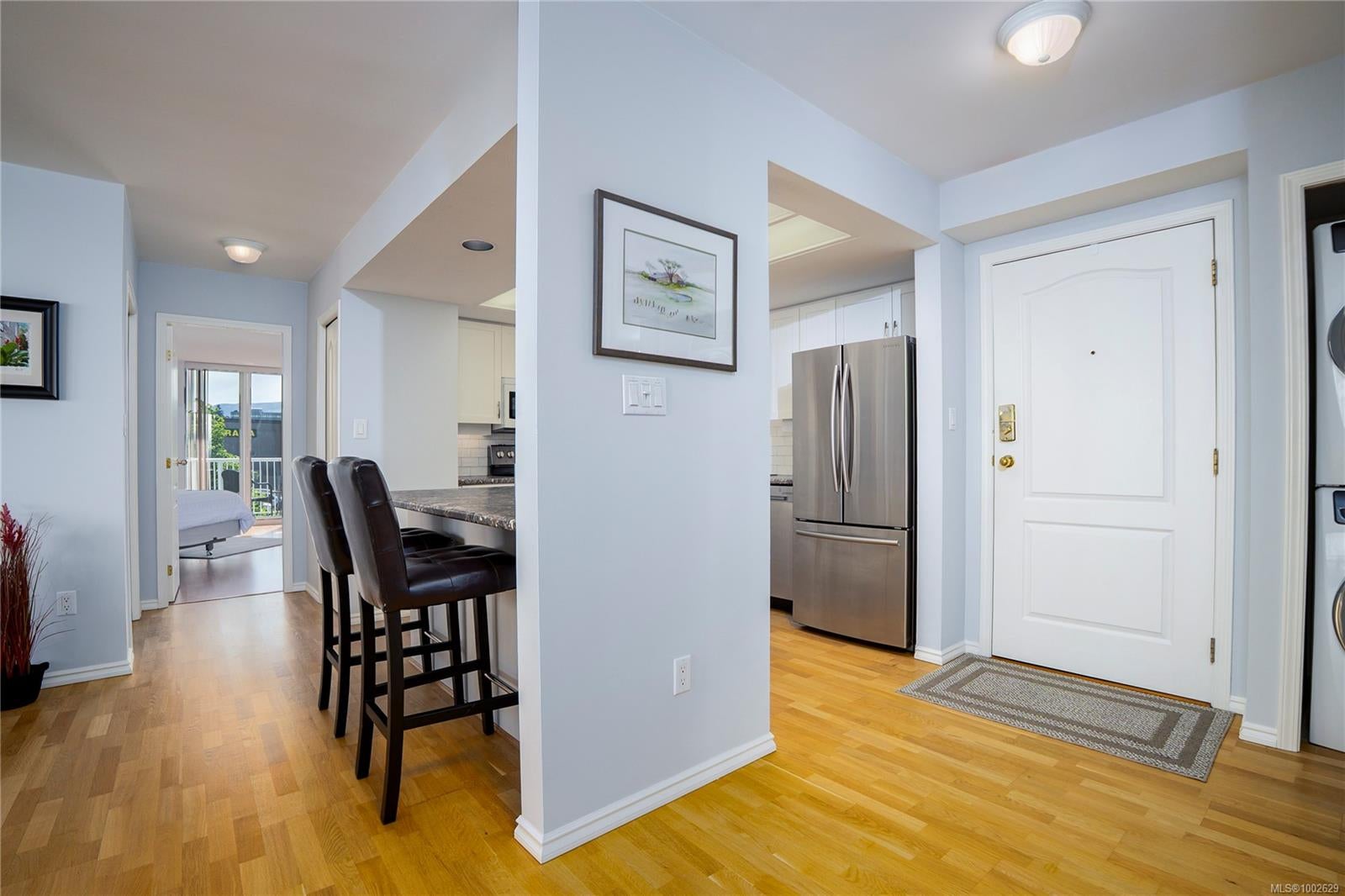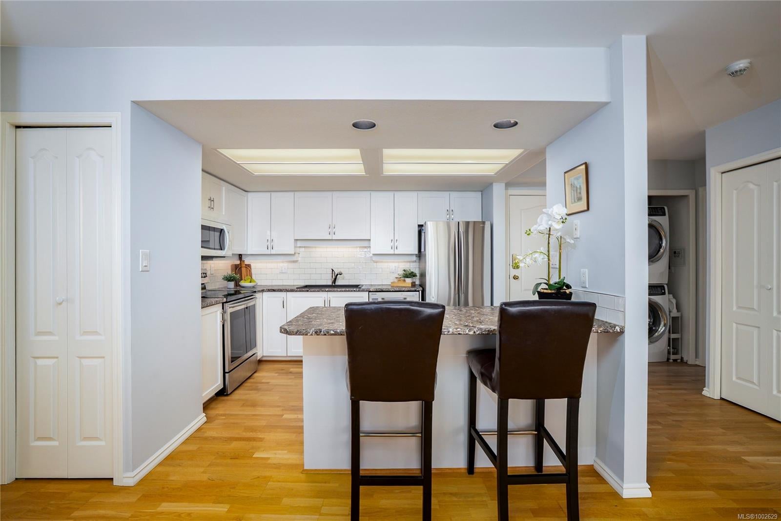 Welcome to this immaculately updated, pet friendly 3 bed, 2 bath 1343 sqft corner unit in the Gabriola building on Cameron Island. The south facing condo offers stunning natural light and beautiful views of the ocean and Mount Benson from your two private balconies. Inside, you'll find hardwood floors, updated cabinets, counters, appliances, and a cozy gas fireplace included in your strata fees. The top-down bottom-up blinds offer privacy without sacrificing light and the two efficient ductless heat pumps keeps you cool in summer and warm in winter. Building highlights include concrete construction, hot tub, bike storage, secured underground parking for 2 cars, and a storage locker. All this in a prime waterfront location just steps to the seawall, Port Theatre, Helijet, inner harbour, Hullo ferry, sea plane, shops, and downtown amenities.