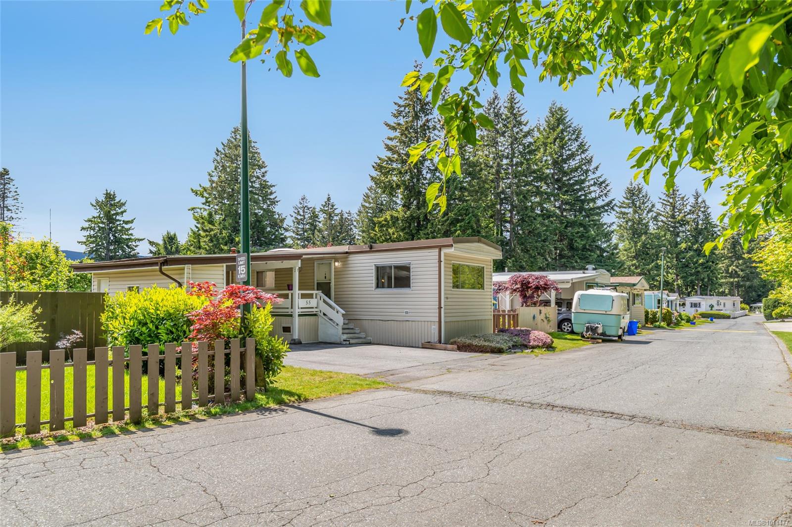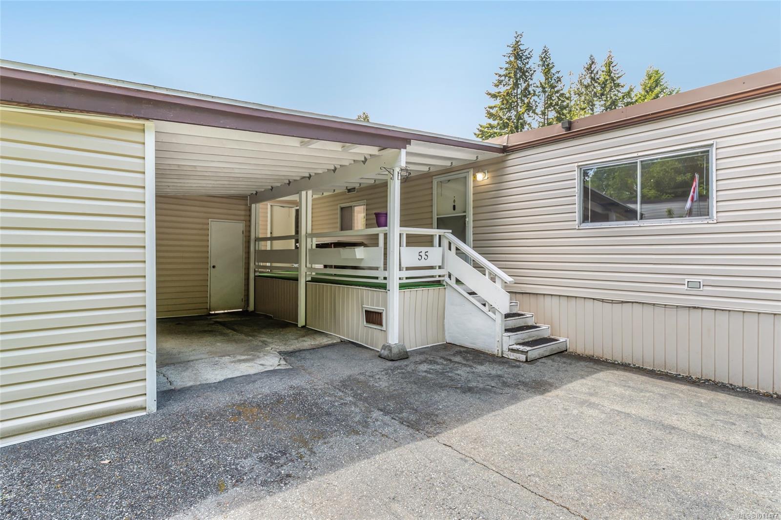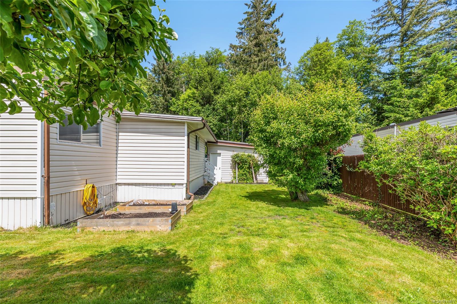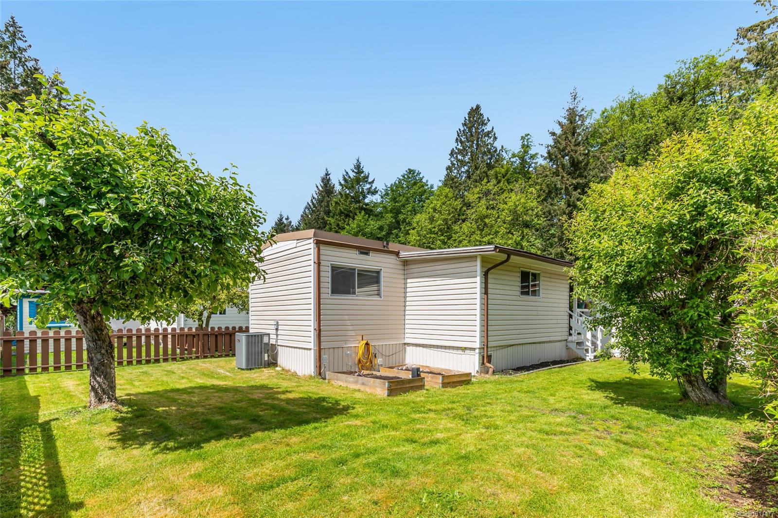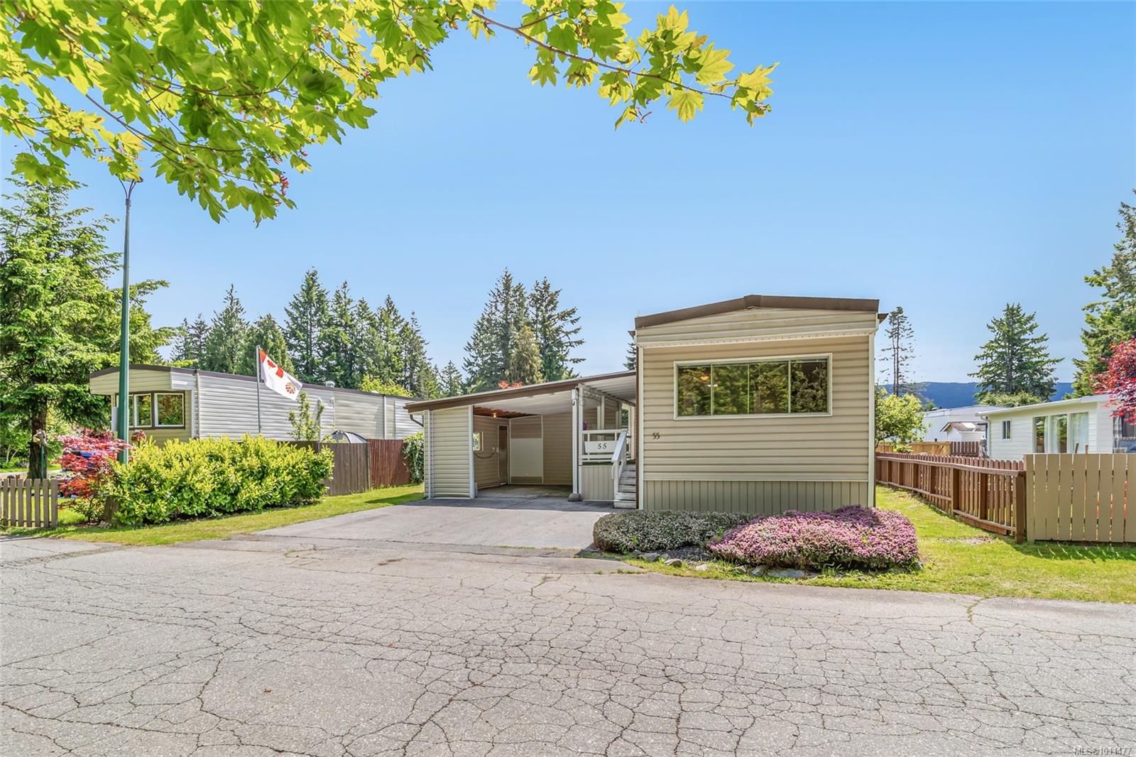 Situated in the sought-after Woodgrove Estates 55+ community, this home offers privacy and convenience near North Nanaimo amenities. Move-in ready 3-bedroom, 1-bathroom home featuring a functional layout with a bright kitchen, dining area, and good sized living room. This home enjoys a private location and features a newer heat pump (2020) and electric furnace, plus a 9-year-old roof. A covered deck provides a separate entrance to the third bedroom—perfect for guests or a hobby room. Enjoy a carport, partially new fencing, and a lovely backyard with raised garden beds. The park offers a friendly community clubhouse for social activities. Two small pets (max 18") are welcome. Ideally located near shopping, bus routes, restaurants and more. Book your showing today!