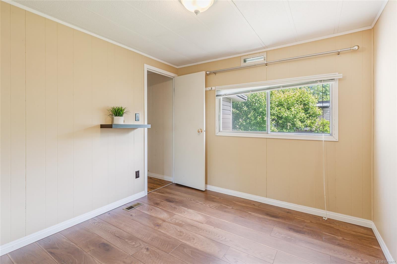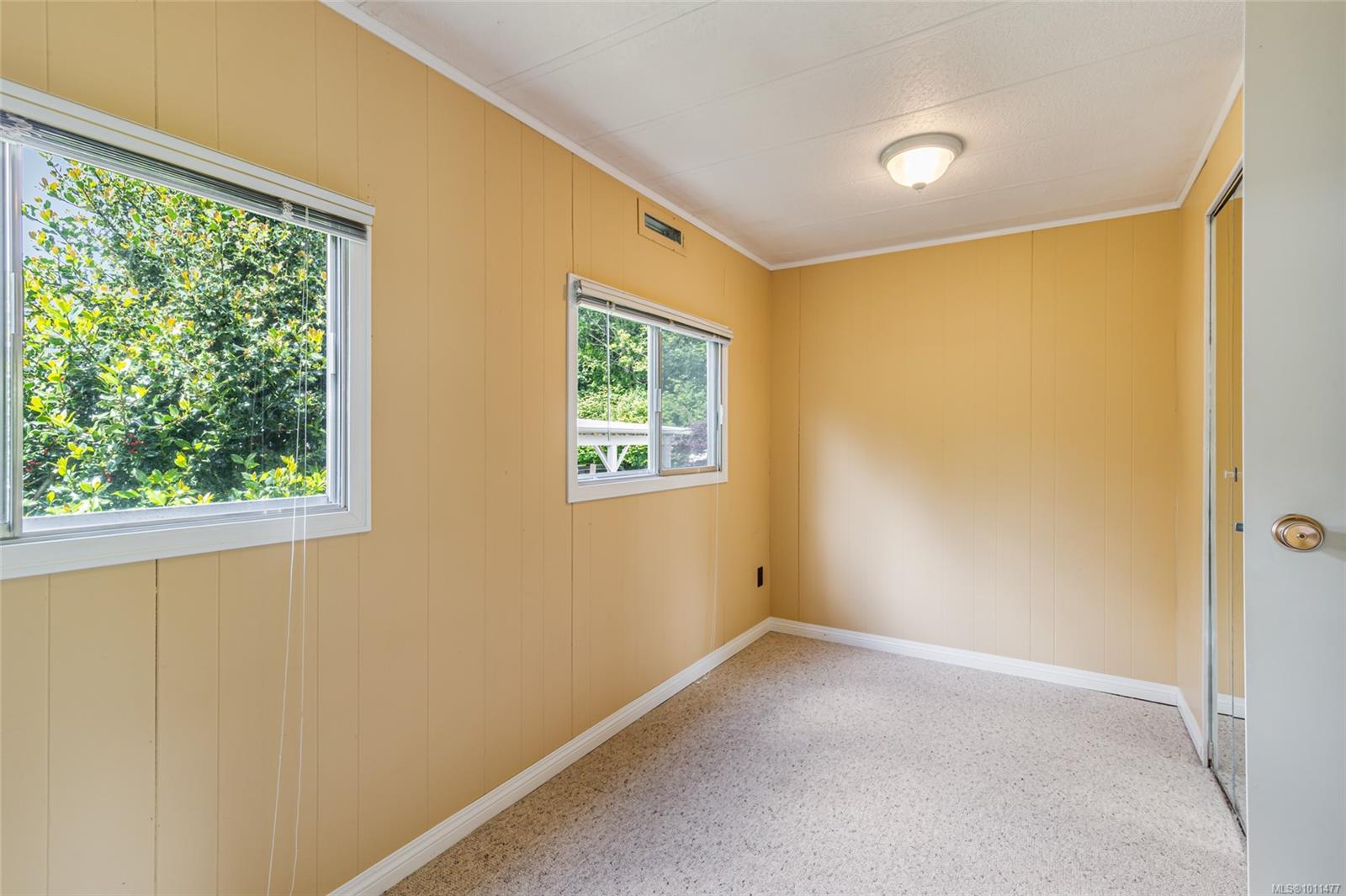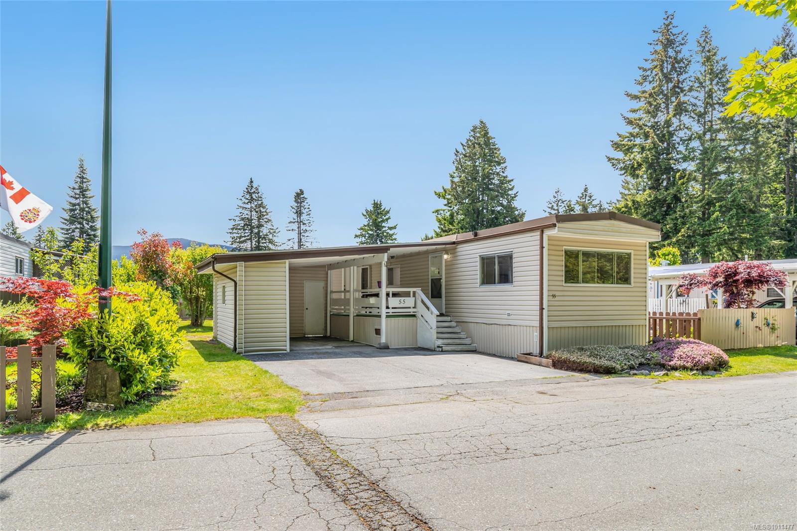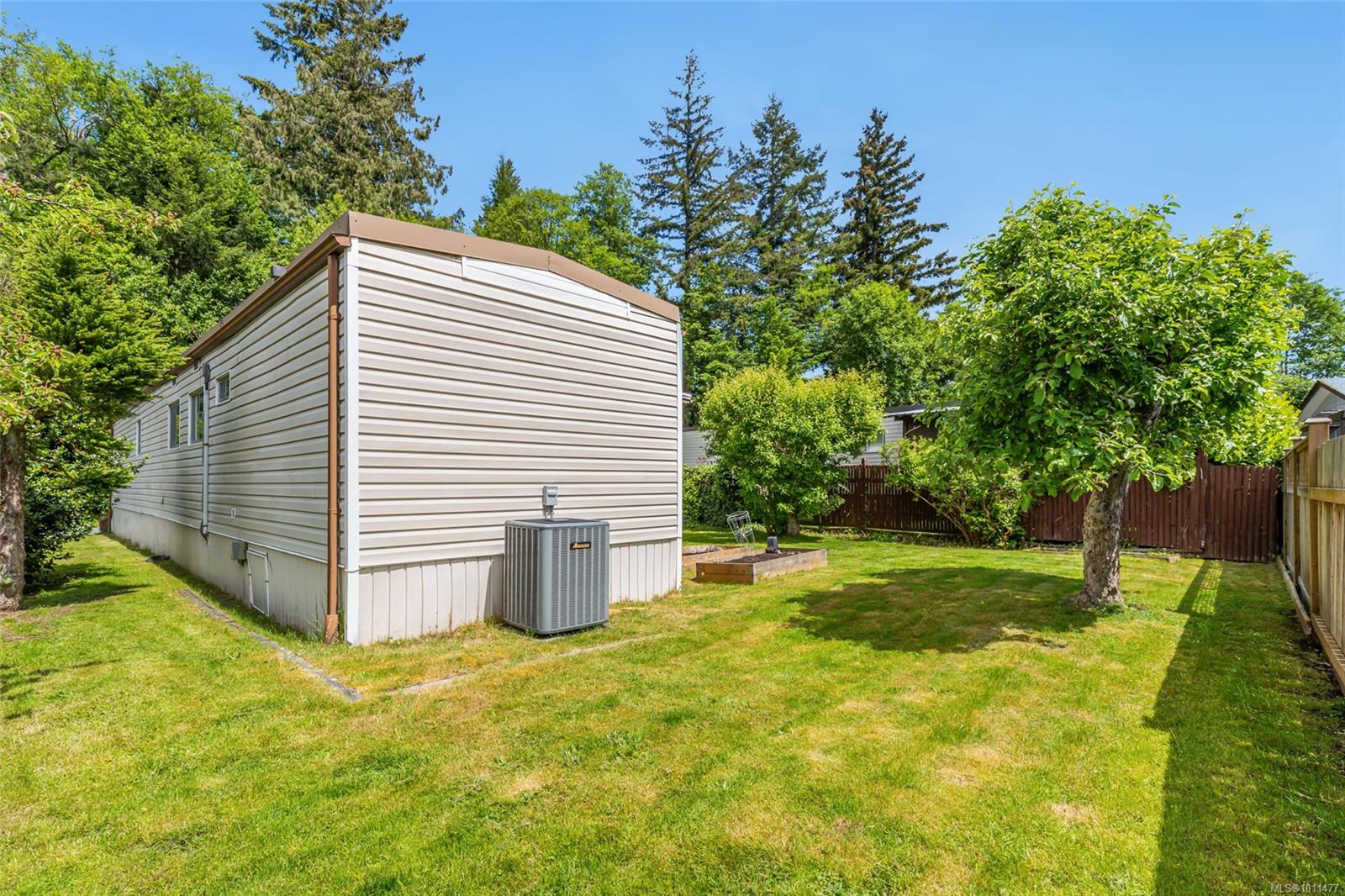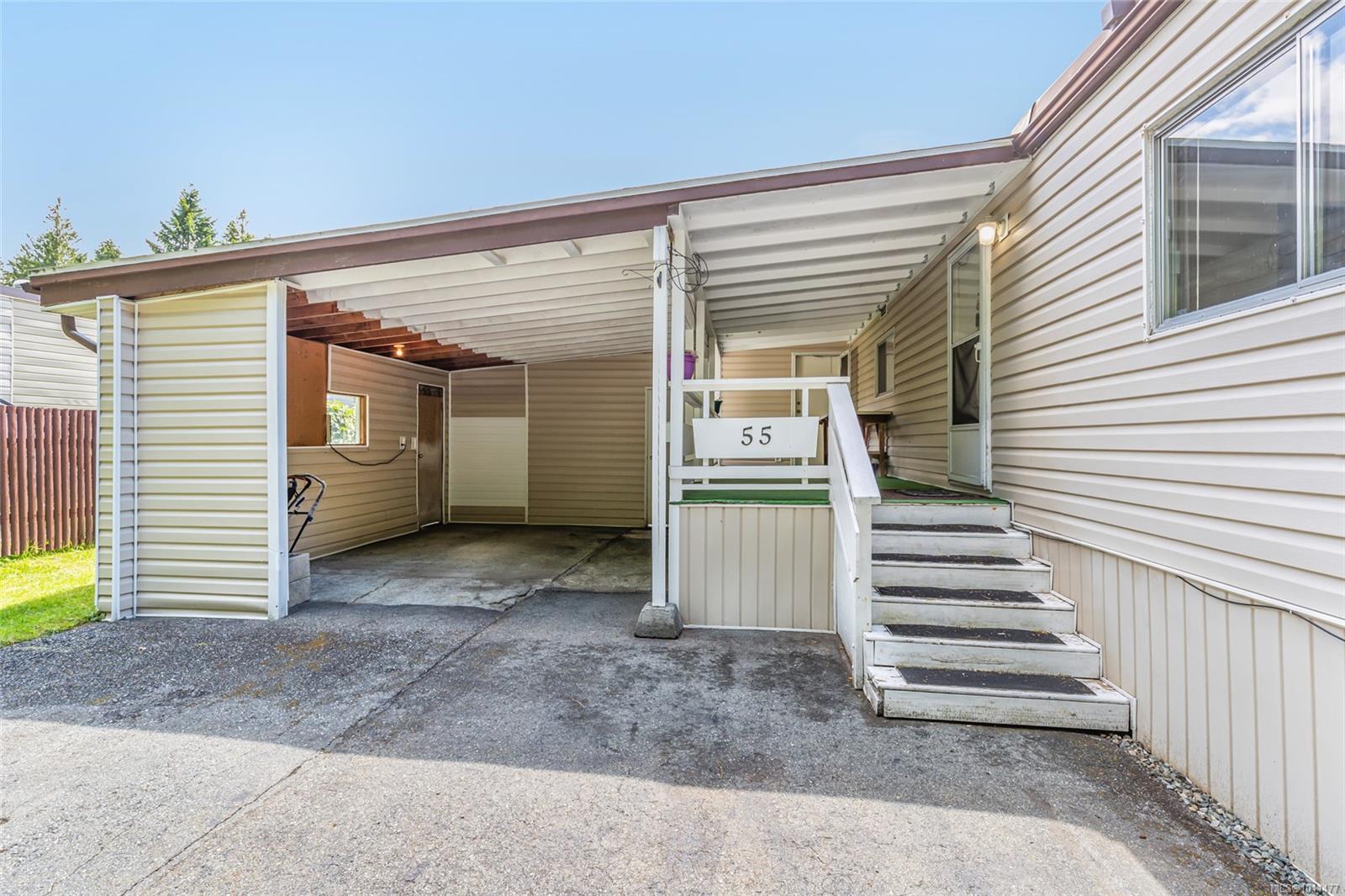Situated in the sought-after Woodgrove Estates 55+ community, this home offers privacy and convenience near North Nanaimo amenities. Move-in ready 3-bedroom, 1-bathroom home featuring a functional layout with a bright kitchen, dining area, and good sized living room. This home enjoys a private location and features a newer heat pump (2020) and electric furnace, plus a 9-year-old roof. A covered deck provides a separate entrance to the third bedroom—perfect for guests or a hobby room. Enjoy a carport, partially new fencing, and a lovely backyard with raised garden beds. The park offers a friendly community clubhouse for social activities. Two small pets (max 18") are welcome. Ideally located near shopping, bus routes, restaurants and more. Book your showing today!
