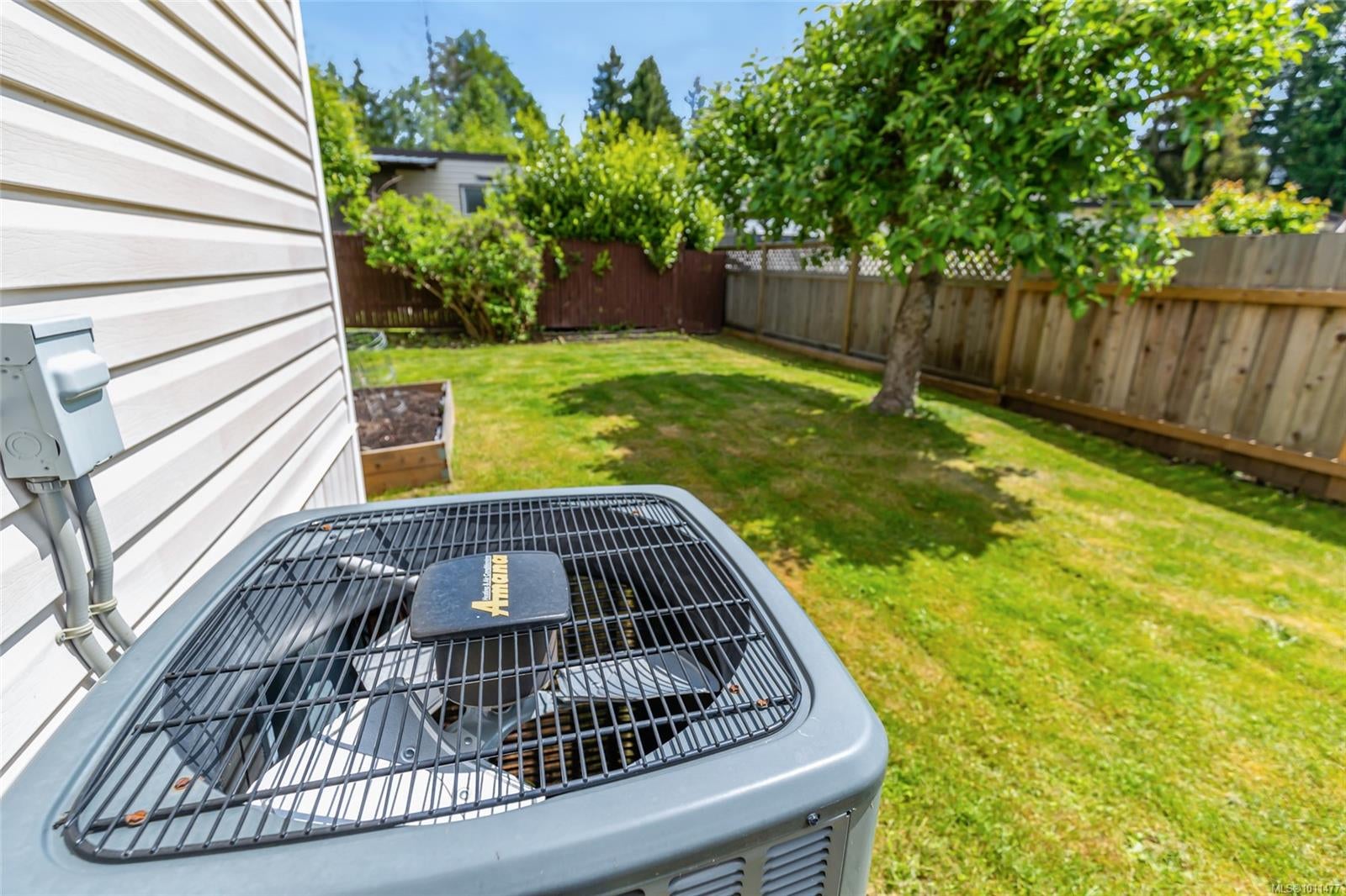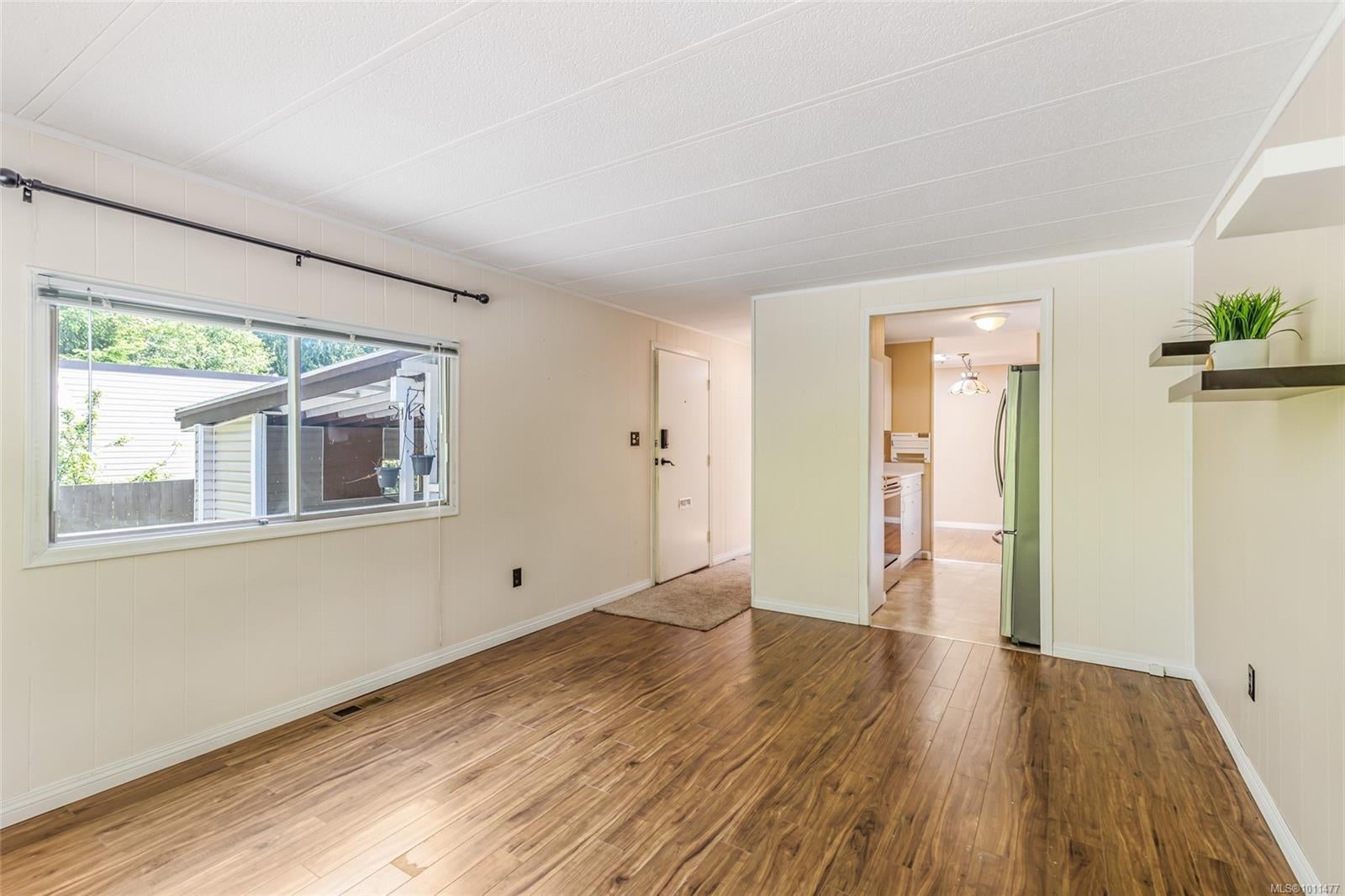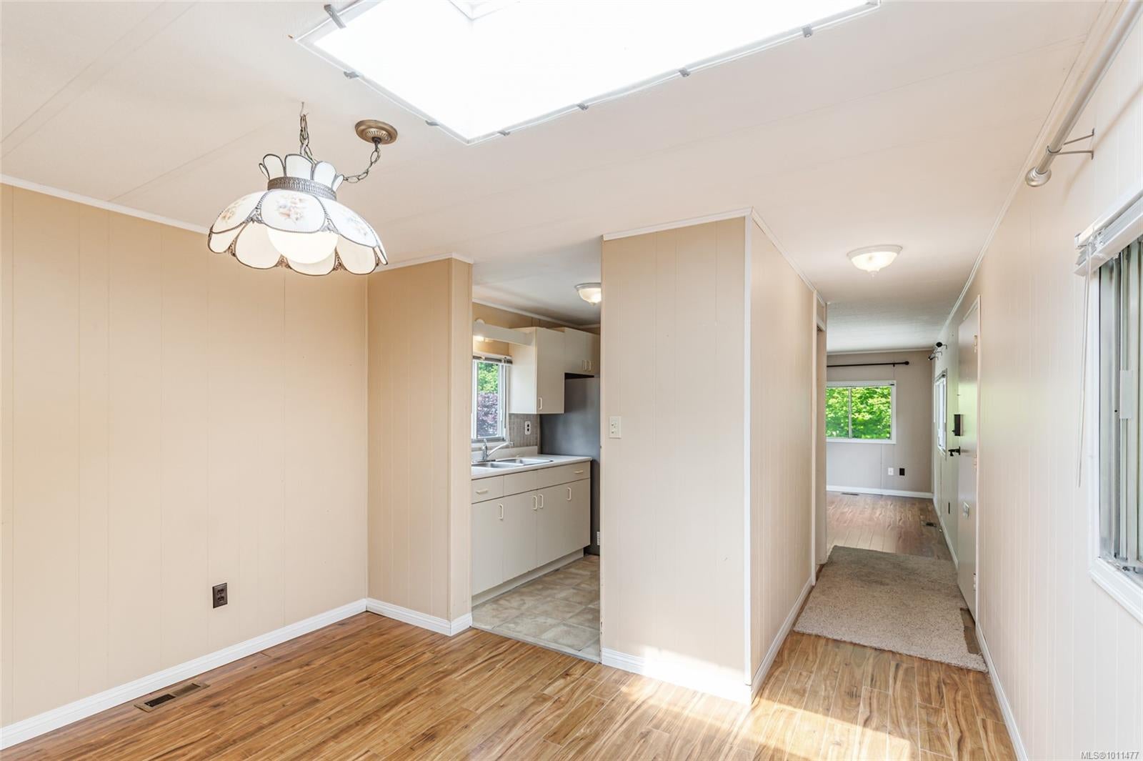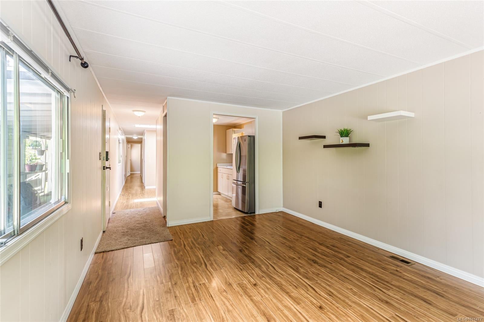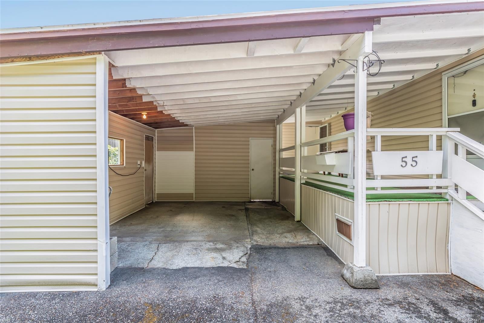 Situated in the sought-after Woodgrove Estates 55+ community, this home offers privacy and convenience near North Nanaimo amenities. Move-in ready 3-bedroom, 1-bathroom home featuring a functional layout with a bright kitchen, dining area, and good sized living room. This home enjoys a private location and features a newer heat pump (2020) and electric furnace, plus a 9-year-old roof. A covered deck provides a separate entrance to the third bedroom—perfect for guests or a hobby room. Enjoy a carport, partially new fencing, and a lovely backyard with raised garden beds. The park offers a friendly community clubhouse for social activities. Two small pets (max 18") are welcome. Ideally located near shopping, bus routes, restaurants and more. Book your showing today!
