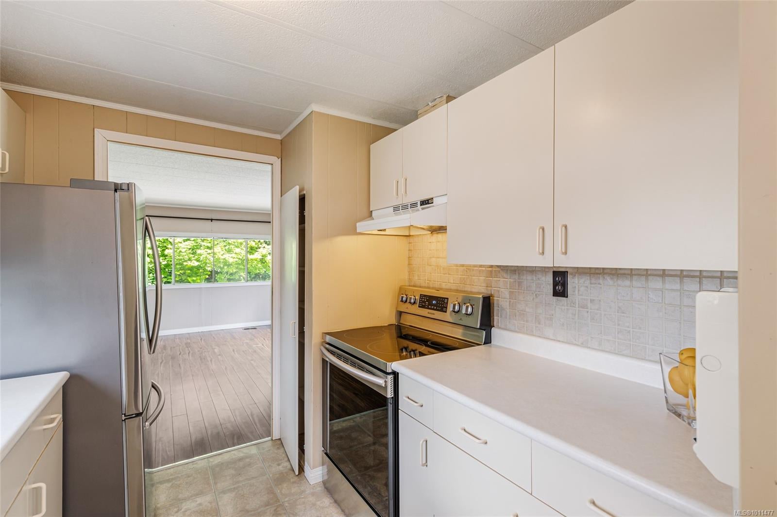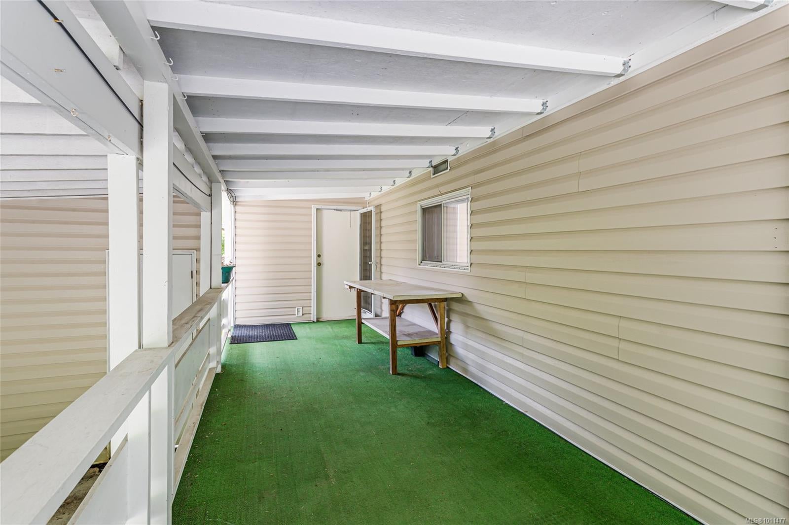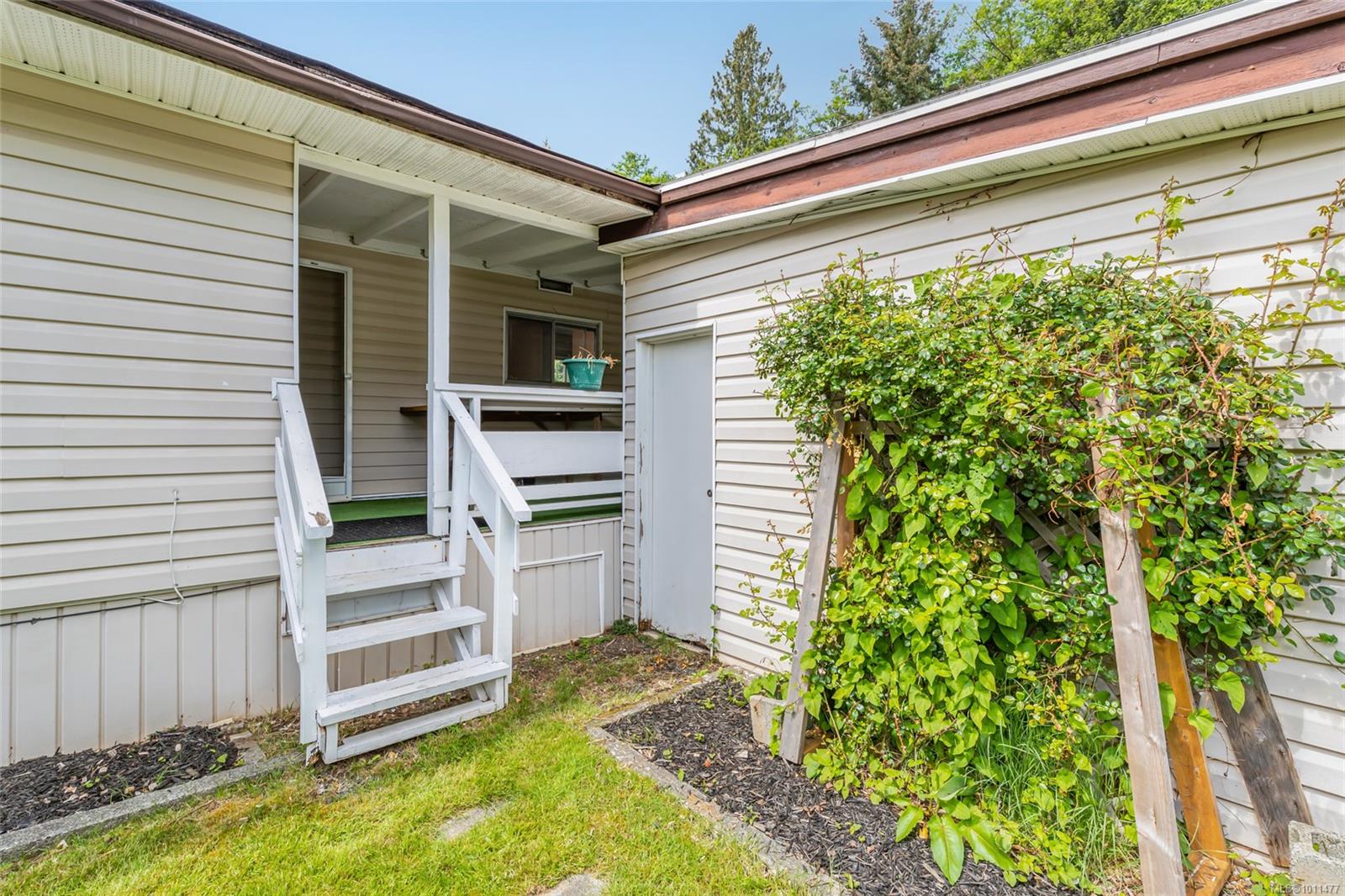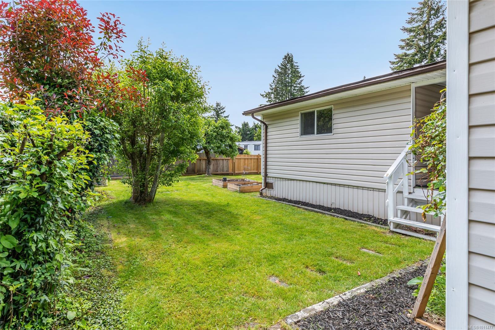 Situated in the sought-after Woodgrove Estates 55+ community, this home offers privacy and convenience near North Nanaimo amenities. Move-in ready 3-bedroom, 1-bathroom home featuring a functional layout with a bright kitchen, dining area, and good sized living room. This home enjoys a private location and features a newer heat pump (2020) and electric furnace, plus a 9-year-old roof. A covered deck provides a separate entrance to the third bedroom—perfect for guests or a hobby room. Enjoy a carport, partially new fencing, and a lovely backyard with raised garden beds. The park offers a friendly community clubhouse for social activities. Two small pets (max 18") are welcome. Ideally located near shopping, bus routes, restaurants and more. Book your showing today!