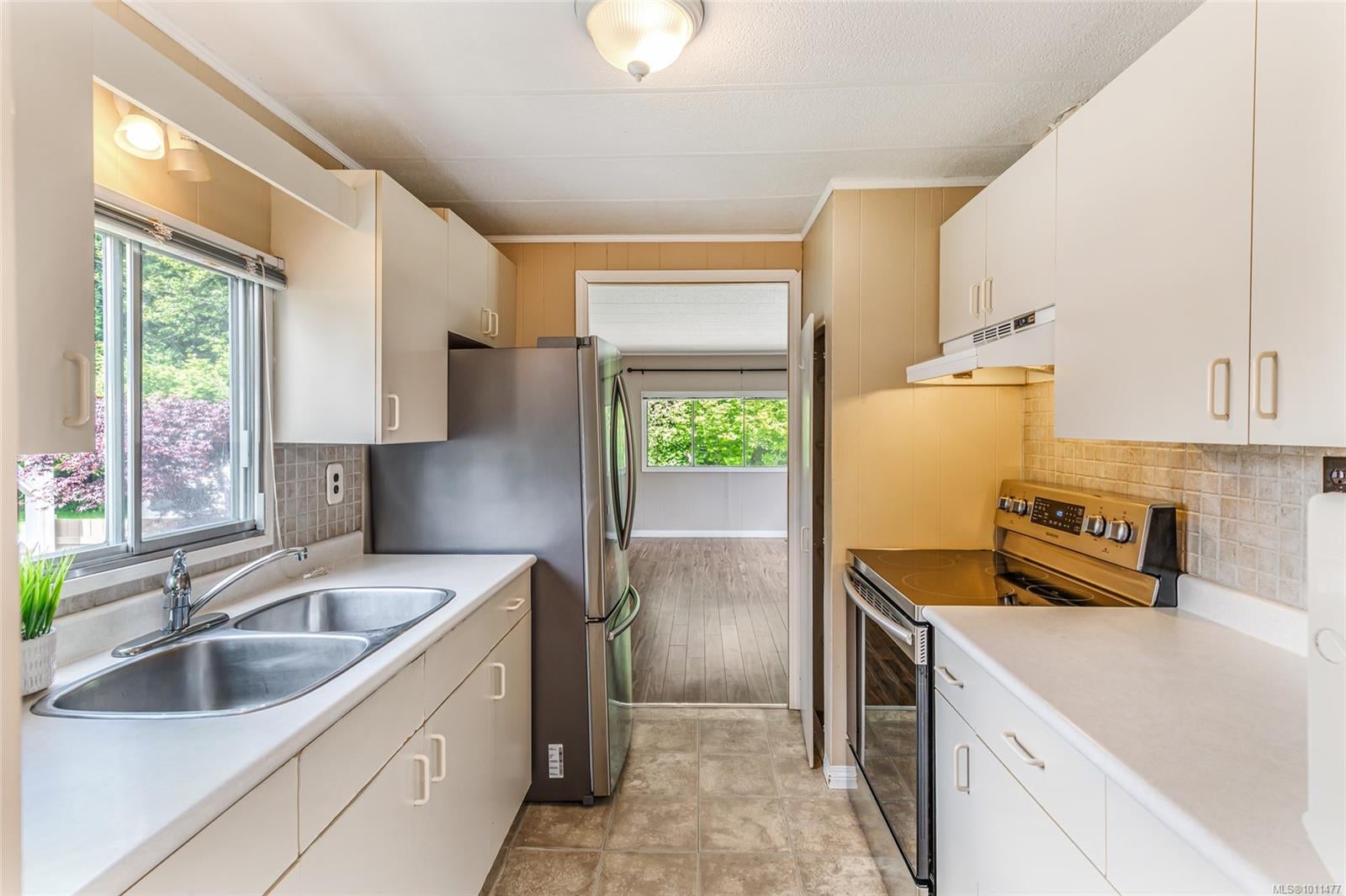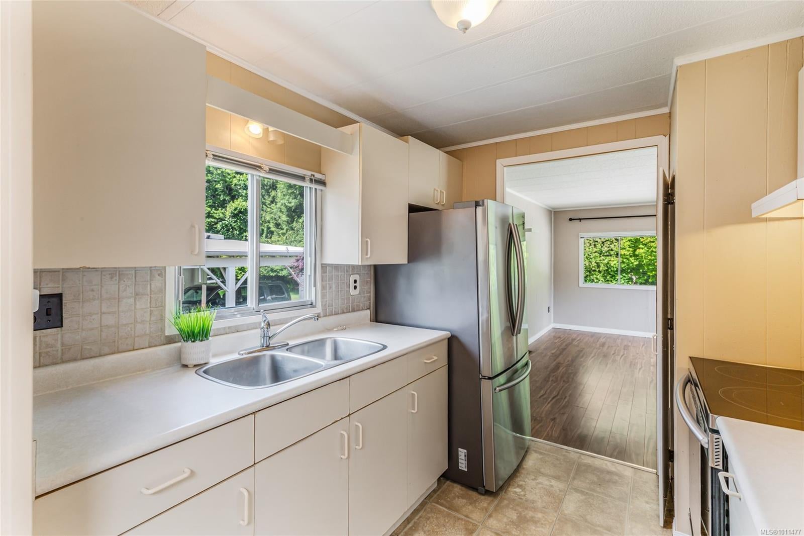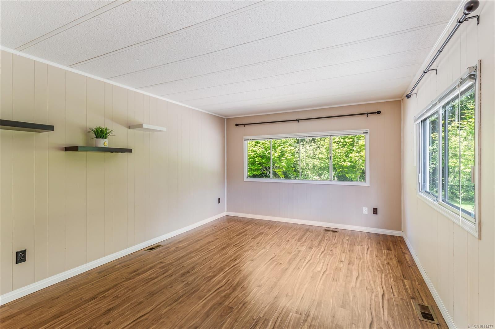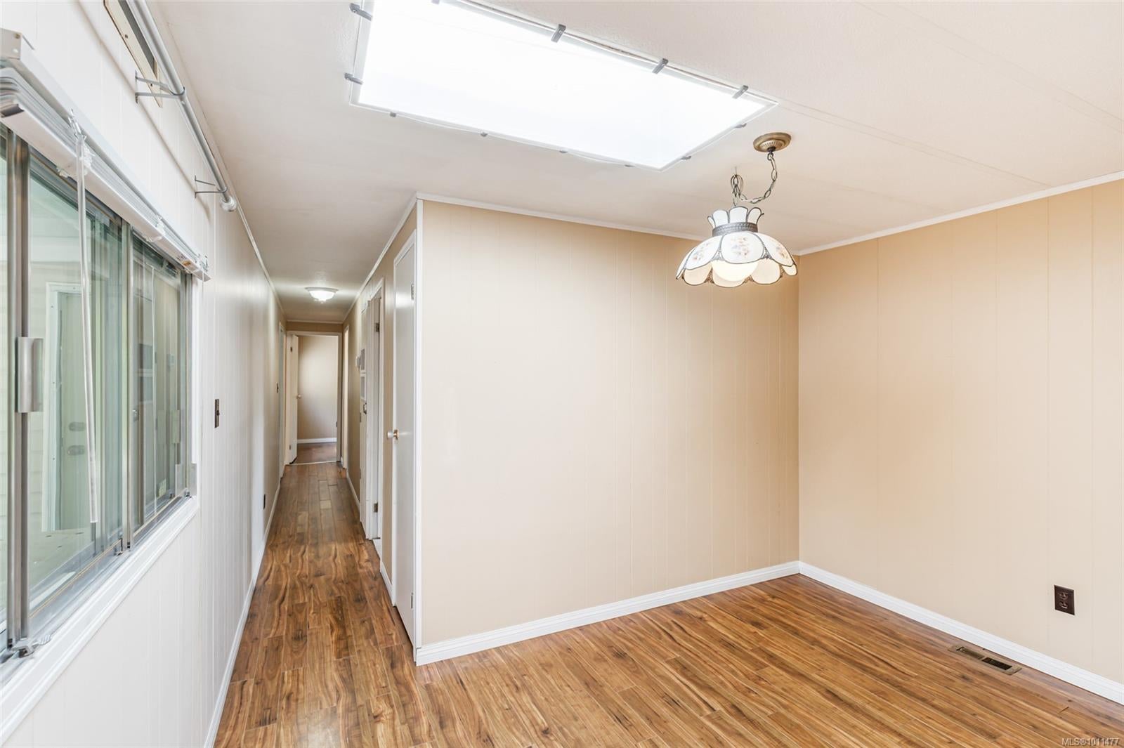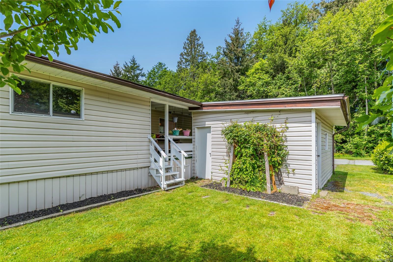 Situated in the sought-after Woodgrove Estates 55+ community, this home offers privacy and convenience near North Nanaimo amenities. Move-in ready 3-bedroom, 1-bathroom home featuring a functional layout with a bright kitchen, dining area, and good sized living room. This home enjoys a private location and features a newer heat pump (2020) and electric furnace, plus a 9-year-old roof. A covered deck provides a separate entrance to the third bedroom—perfect for guests or a hobby room. Enjoy a carport, partially new fencing, and a lovely backyard with raised garden beds. The park offers a friendly community clubhouse for social activities. Two small pets (max 18") are welcome. Ideally located near shopping, bus routes, restaurants and more. Book your showing today!