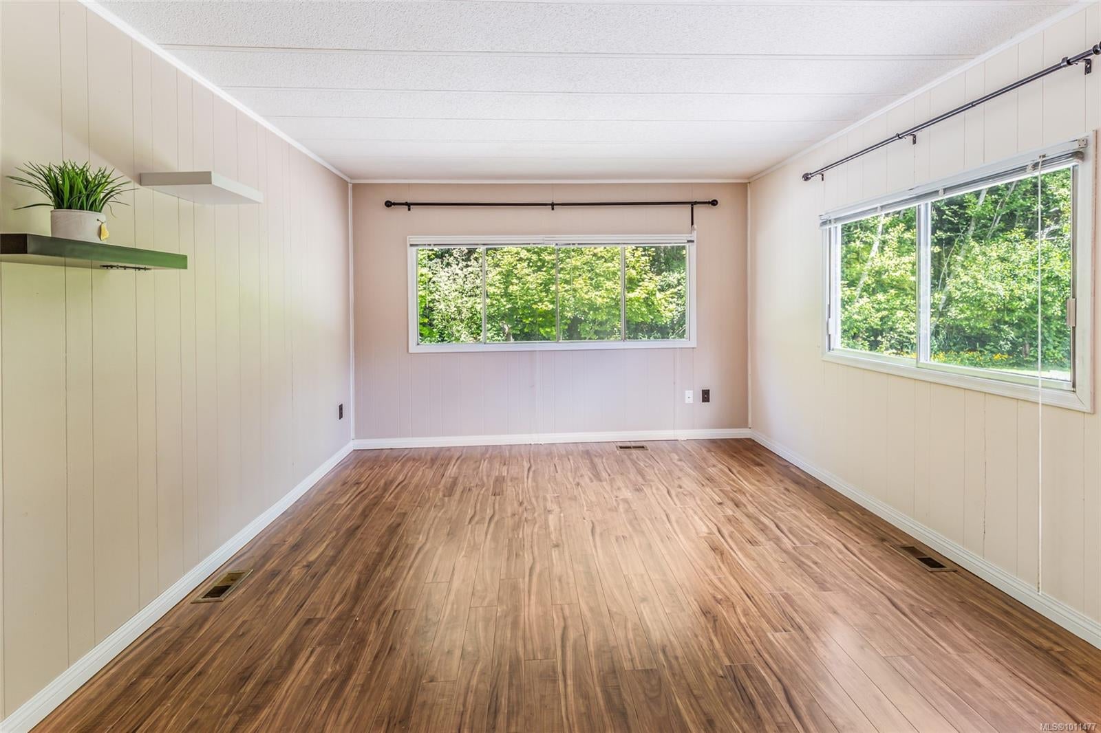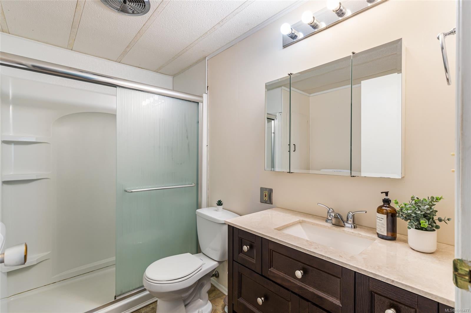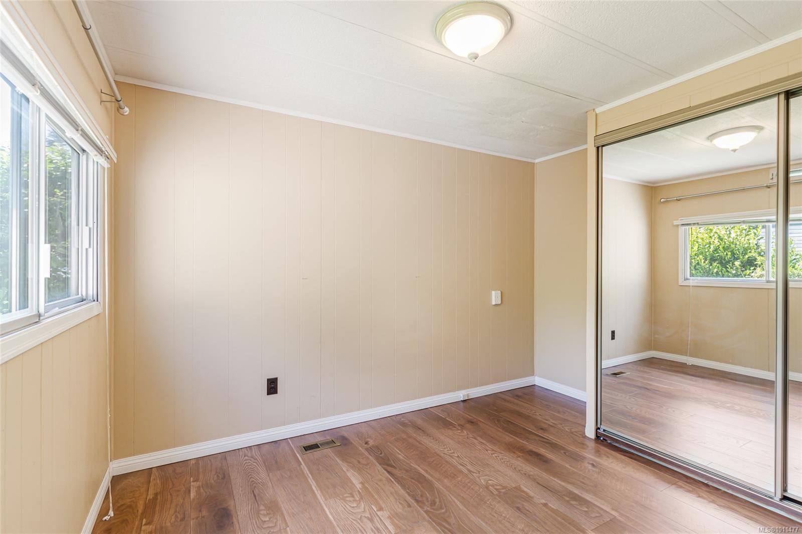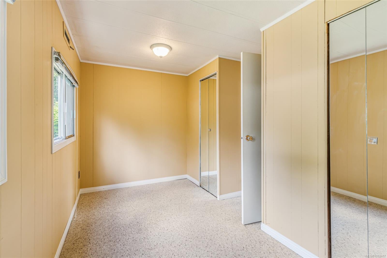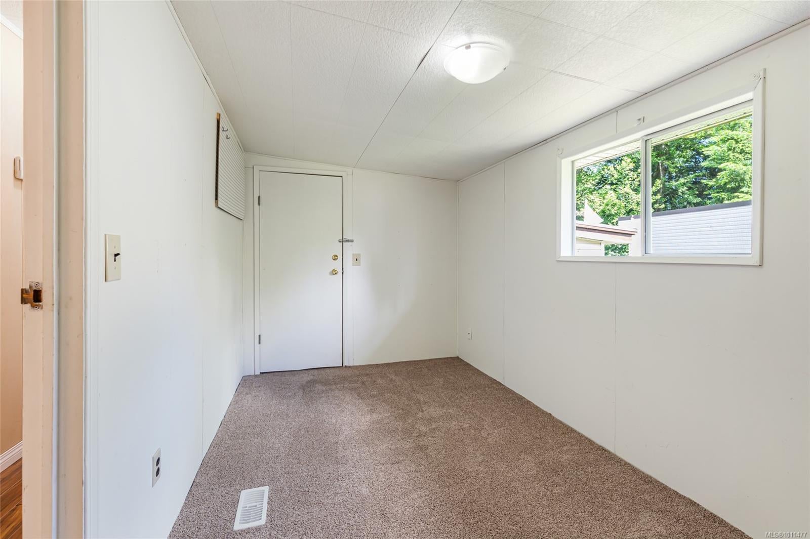 Situated in the sought-after Woodgrove Estates 55+ community, this home offers privacy and convenience near North Nanaimo amenities. Move-in ready 3-bedroom, 1-bathroom home featuring a functional layout with a bright kitchen, dining area, and good sized living room. This home enjoys a private location and features a newer heat pump (2020) and electric furnace, plus a 9-year-old roof. A covered deck provides a separate entrance to the third bedroom—perfect for guests or a hobby room. Enjoy a carport, partially new fencing, and a lovely backyard with raised garden beds. The park offers a friendly community clubhouse for social activities. Two small pets (max 18") are welcome. Ideally located near shopping, bus routes, restaurants and more. Book your showing today!