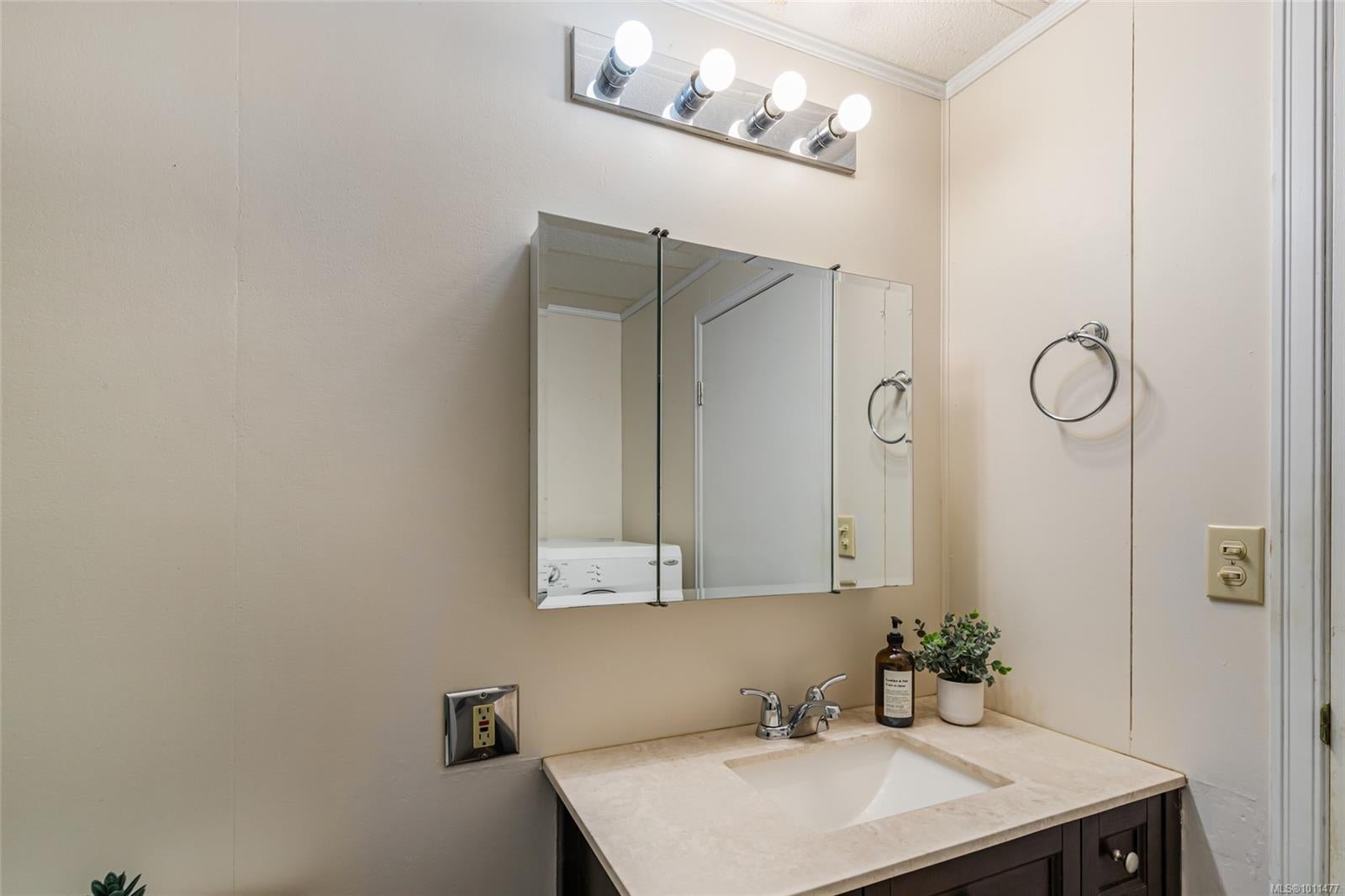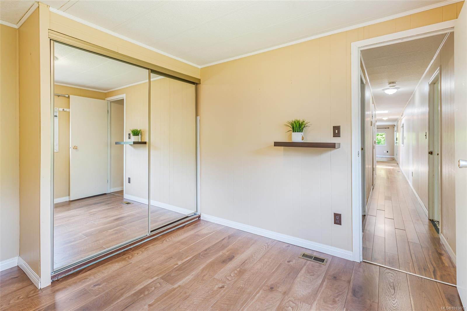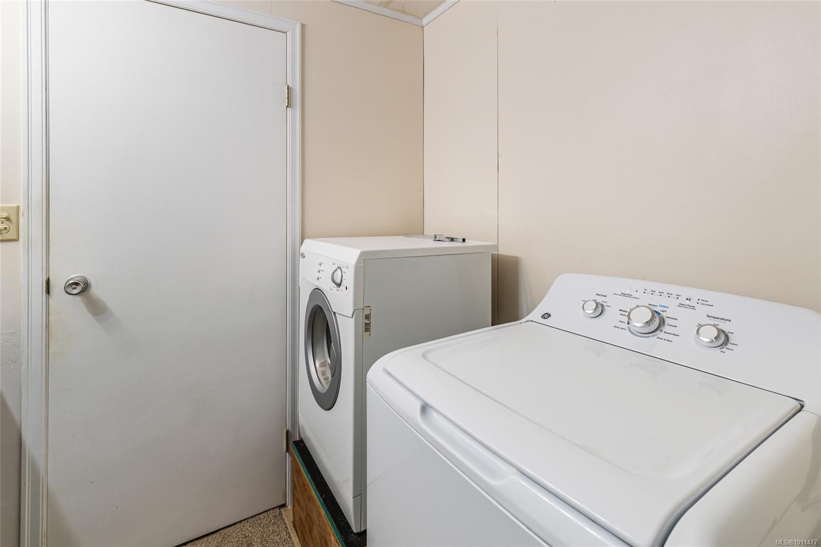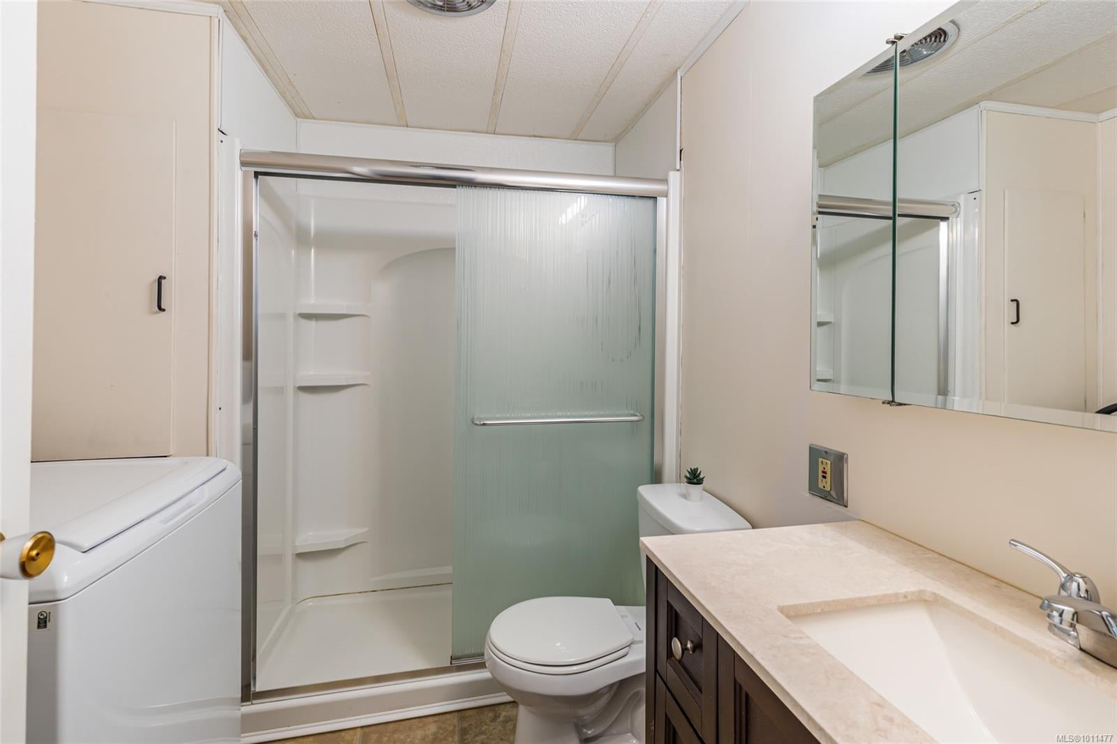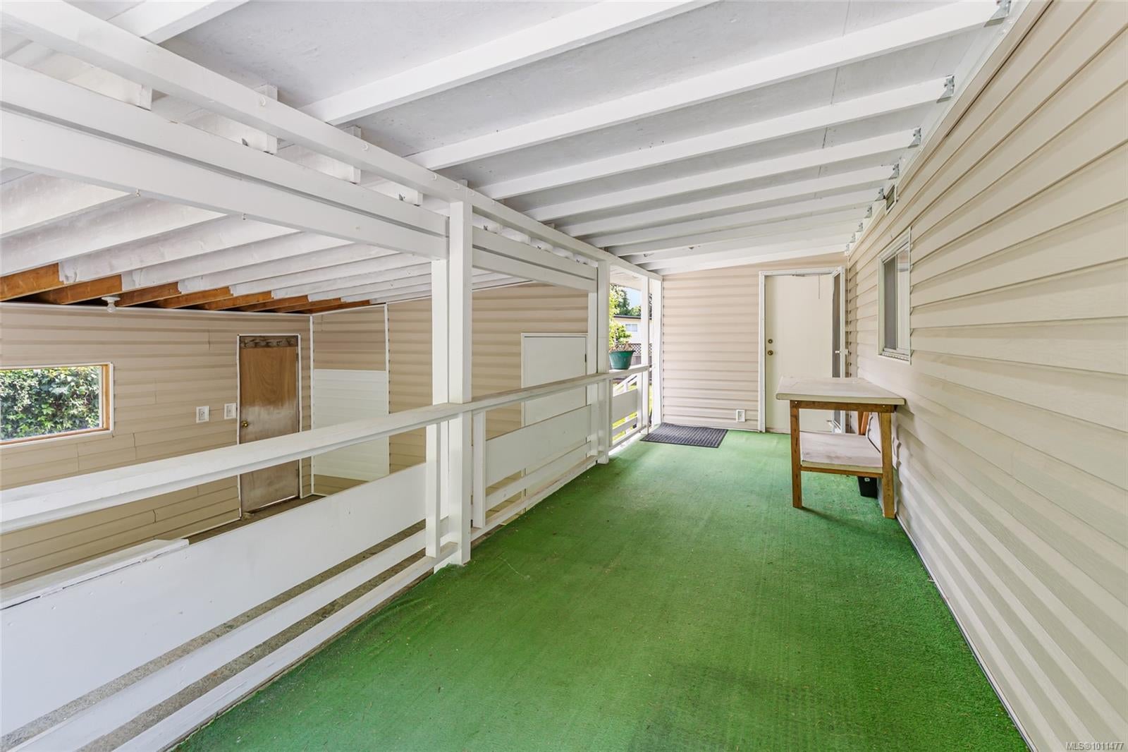 Situated in the sought-after Woodgrove Estates 55+ community, this home offers privacy and convenience near North Nanaimo amenities. Move-in ready 3-bedroom, 1-bathroom home featuring a functional layout with a bright kitchen, dining area, and good sized living room. This home enjoys a private location and features a newer heat pump (2020) and electric furnace, plus a 9-year-old roof. A covered deck provides a separate entrance to the third bedroom—perfect for guests or a hobby room. Enjoy a carport, partially new fencing, and a lovely backyard with raised garden beds. The park offers a friendly community clubhouse for social activities. Two small pets (max 18") are welcome. Ideally located near shopping, bus routes, restaurants and more. Book your showing today!