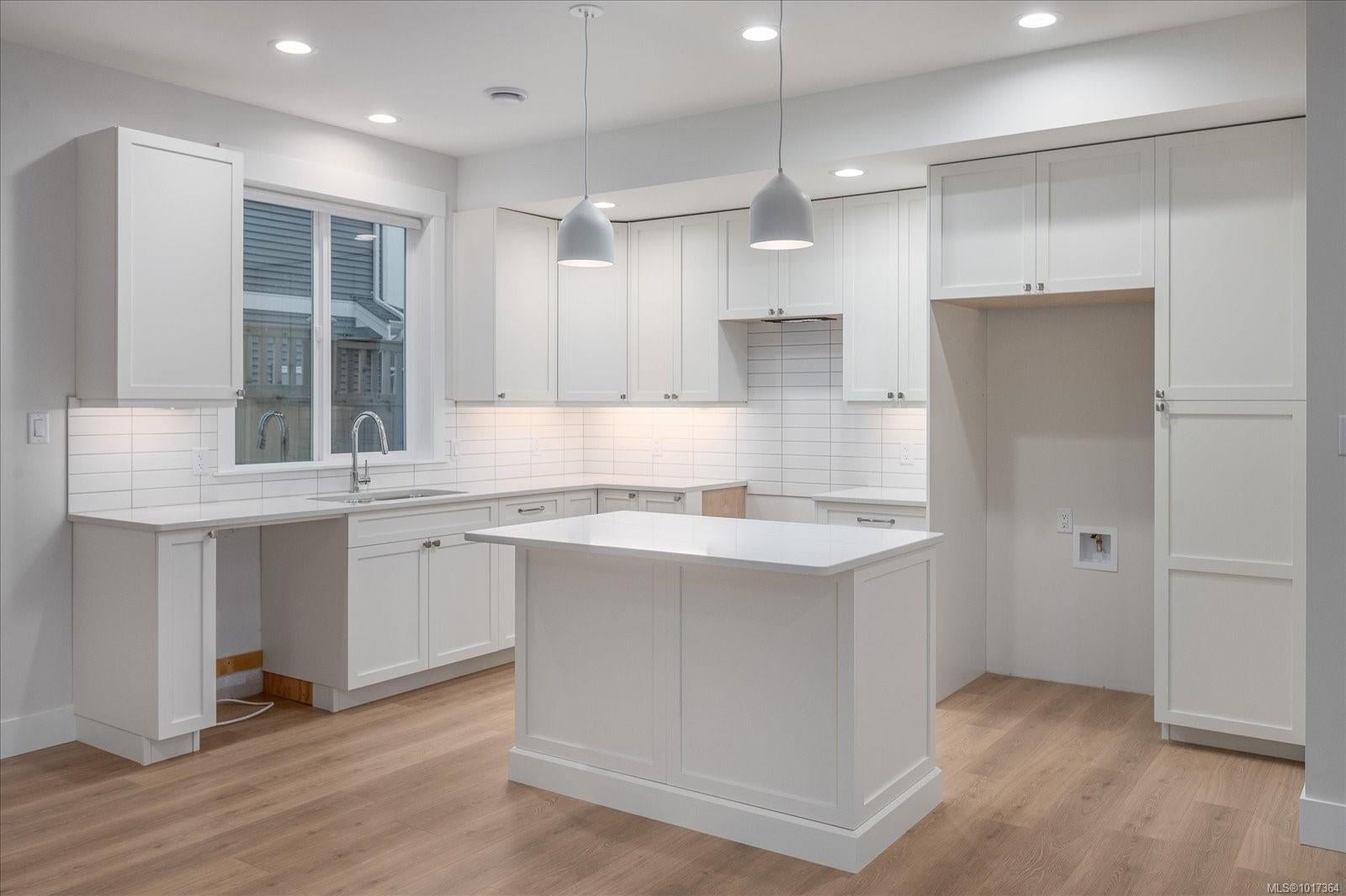 Welcome to this brand new 3 bed, 3 bath home in the family friendly Divers Lake community. Situated on a quiet dead-end street. A bright and spacious main floor featuring a stylish open-concept layout. The kitchen offers white shaker cabinets and quartz countertops. The adjoining dining/living areas are filled with natural light and warmed by a cozy gas fireplace. A convenient powder room and laminate flooring complete the main level. From here, step out to your fully fenced patio—ideal for outdoor dining, entertaining, or relaxing in your private backyard. Upstairs, the generous primary suite features a large walk-in closet with built-in wood organizers and a luxurious ensuite with double sinks and a beautifully tiled shower. Two additional bedrooms, a versatile family room, a 4-piece main bathroom, and a laundry room provide ample space for the whole family. Landscaping, appliances, blinds, EV ready, Navien H/W on demand, and a heat pump with gas backup. Price plus GST