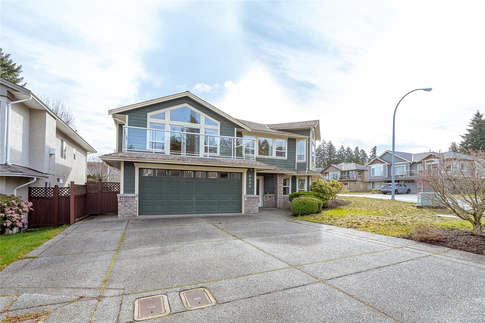 Enjoy stunning ocean and coastal mountain views across the Georgia Strait from this spacious executive home in sought-after Dover View Estates in North Nanaimo. Set on a landscaped corner lot with a large, level fully fenced backyard, this property offers exceptional space for families, entertaining, and everyday living. With over 3,500 sq ft of living space, the home features 6 bedrooms plus a den and 4 bathrooms, including a 1-bedroom unauthorized suite that provides flexibility for extended family, guests, or potential rental income. The main living areas are bright and welcoming, highlighted by vaulted ceilings, oversized windows that capture the views, crown moulding, and two natural gas fireplaces that add warmth and character. The spacious maple kitchen is designed for both functionality and gathering, offering ample cabinetry, generous counter space, a center island, and a brand-new high-end appliance package. From the main living areas, step out onto the ocean-view decks at both the front and rear of the home, ideal for enjoying morning coffee, evening sunsets, or entertaining friends while taking in the scenery. The primary suite offers a private retreat with direct access to the rear deck, a walk-in closet, and a 4-piece ensuite featuring a relaxing jetted tub. Additional features include a heat pump for efficient year-round comfort and abundant storage space throughout the home. Located in one of North Nanaimo’s most desirable neighbourhoods, this home is just minutes from all levels of schools, parks, scenic walking trails, beach access, and the shopping and amenities that make North Nanaimo such a sought-after place to live. This is a rare opportunity to enjoy generous living space, ocean views, and an excellent location in a family-friendly community. Listed by Chris Carter with Royal Lepage Nanaimo Realty!