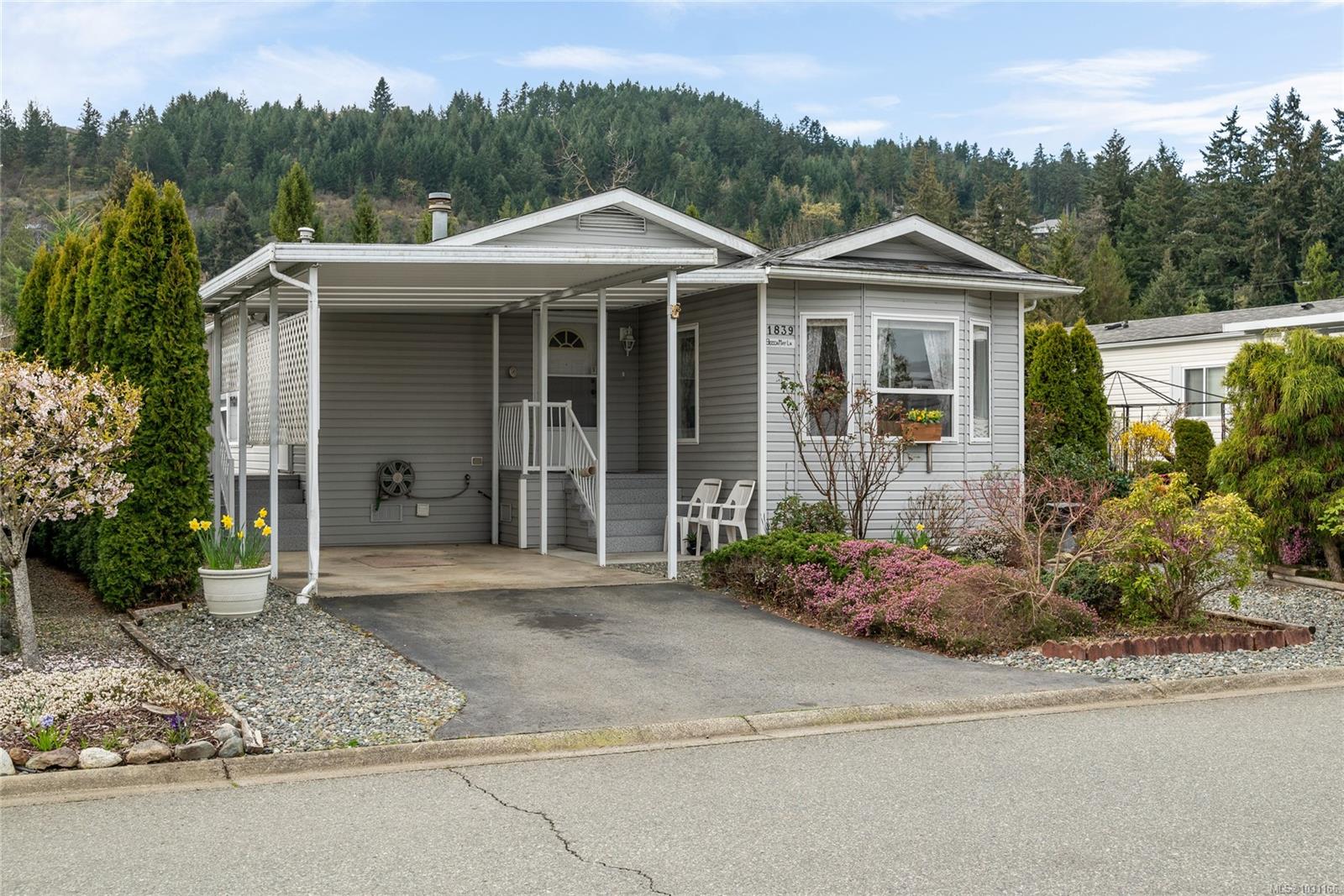 Tucked into a quiet and well kept 45 plus community at Valley Oak estates, 1839 Becca May Lane is a beautifully maintained double wide manufactured home offering 2 bedrooms and 2 bathrooms, with approximately 1375 sqft of bright and open living space. From the moment you step inside, you can feel how well this home has been cared for. The layout flows comfortably with a spacious living room, a dedicated dining area, and a kitchen that connects seamlessly with a breakfast area, offering plenty of cabinetry and storage for everyday living. The primary bedroom is generously sized and features a walk in closet and private 4 piece ensuite, creating a comfortable and private retreat. The second bedroom is well positioned on the opposite side of the home, making it ideal for guests, a home office, or hobbies. You will also appreciate the separate laundry room and welcoming foyer that adds to the overall functionality and flow of the space. Large windows throughout bring in an abundance of natural light, giving the home a warm and inviting feel. Step outside to enjoy a low maintenance yard, a sundeck, and a balcony space that is perfect for relaxing or enjoying your morning coffee. Covered parking adds convenience and protection year round. Located in a peaceful setting close to parks, shopping, and Westwood Lake, this home offers a great balance of privacy and accessibility. If you have been looking for comfortable, easy living in a friendly and established community, this is a fantastic opportunity. Listed by Chris Carter with Royal LePage Nanaimo Realty. Offered at $429,900, feel free to call me to arrange your tour!